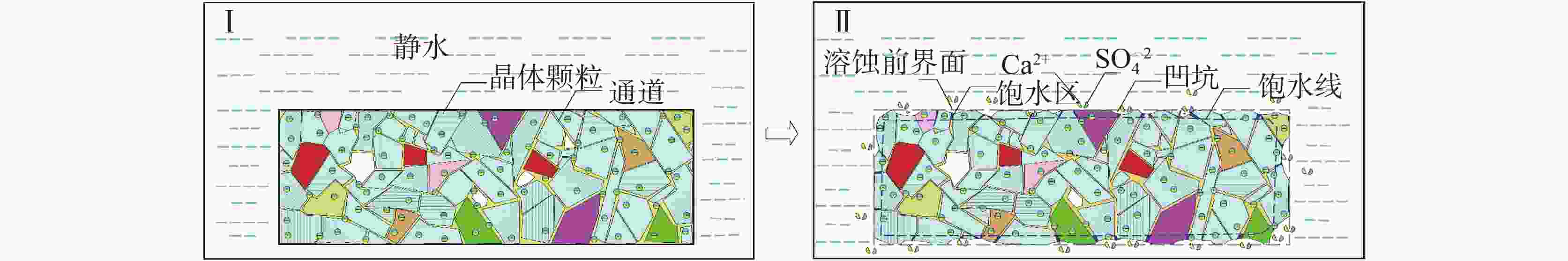 摘要: 以往针对石膏岩溶蚀试验多局限于室内环境,难以全面反映深部石膏溶蚀的真实情况。钻孔原位溶蚀试验方法是在石膏岩场地的钻孔内不同深度放置石膏岩标准试件,模拟石膏岩在原位水动力、水化学、温度等环境下的动态溶蚀过程。目前,国内鲜有公开该方法的研究成果,本文以白垩系灌口组石膏岩为研究对象,通过试验首次获取该石膏岩原位溶蚀宏观形态、溶蚀速率、水化学变化特征,深度剖析原位环境下石膏岩的溶蚀主控因素和机理。研究结果表明:钻孔原位环境中,石膏岩溶蚀的宏观特征、溶蚀速率具有显著垂向分层效应,主要受水动力条件控制,水化学影响次之;钻孔内15 m和25 m深度处试件溶蚀速率高达0.25 mm·d−1(约90 mm·a−1),而35 m深度处试件溶蚀速率仅为上述位置的1/4;15 m和25 m处试件的溶蚀主要受水动力物理驱动作用,溶蚀过程经历吸附饱水、浅层凹坑、横向并坑、纵深解体的四个阶段;35 m处试件在近似于封闭地下水环境下,溶蚀速率缓慢,主要受控于化学溶解。通过本试验研究,构建了石膏岩钻孔原位溶蚀试验流程和评价方法,可为石膏岩场地岩溶风险评价提供重要的参考依据。Abstract: