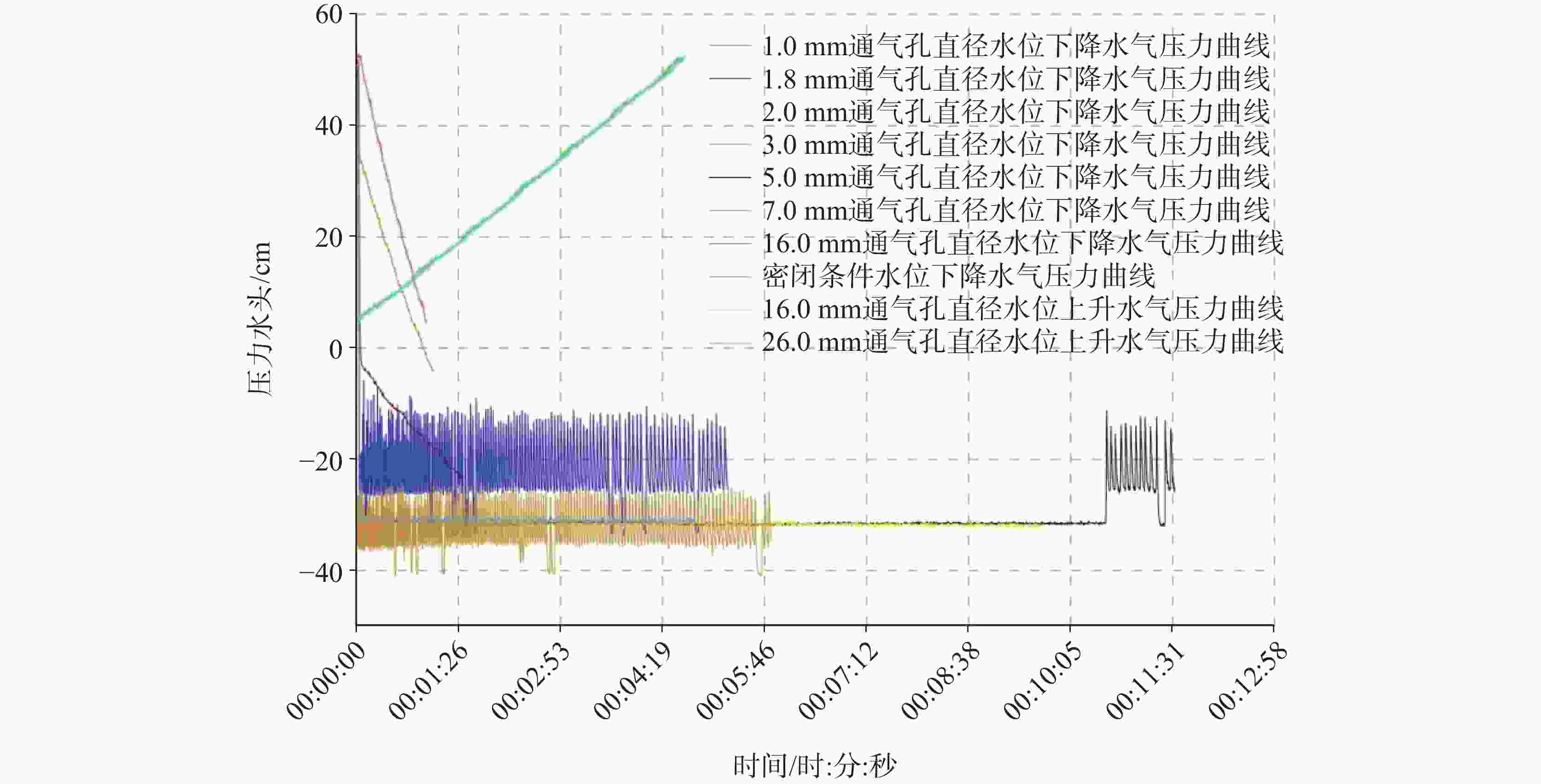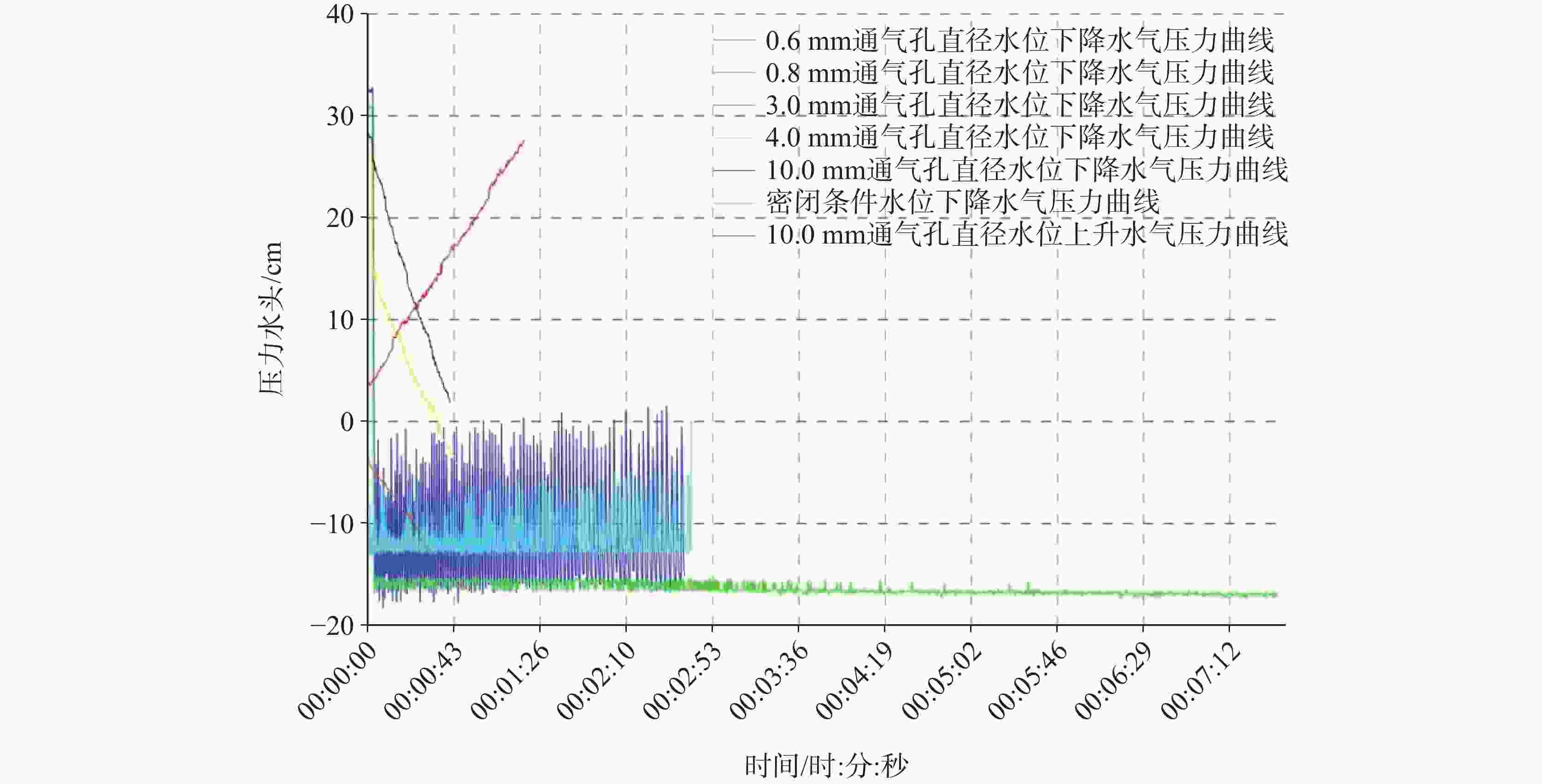实验类型 初始水位 出水状态 气孔直径/mm 水气平衡下降实验 初始水位分别为60、55、50、45、40、35、30、25、20、15 cm,