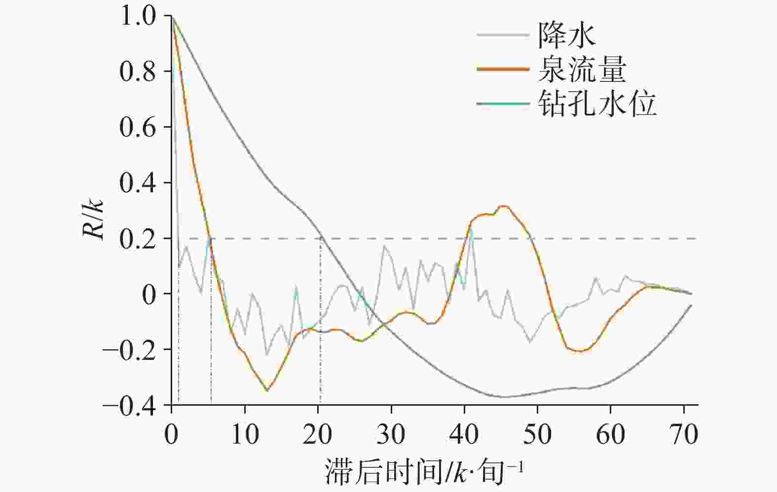 图  5  降水、泉流量与钻孔水位自相关函数曲线