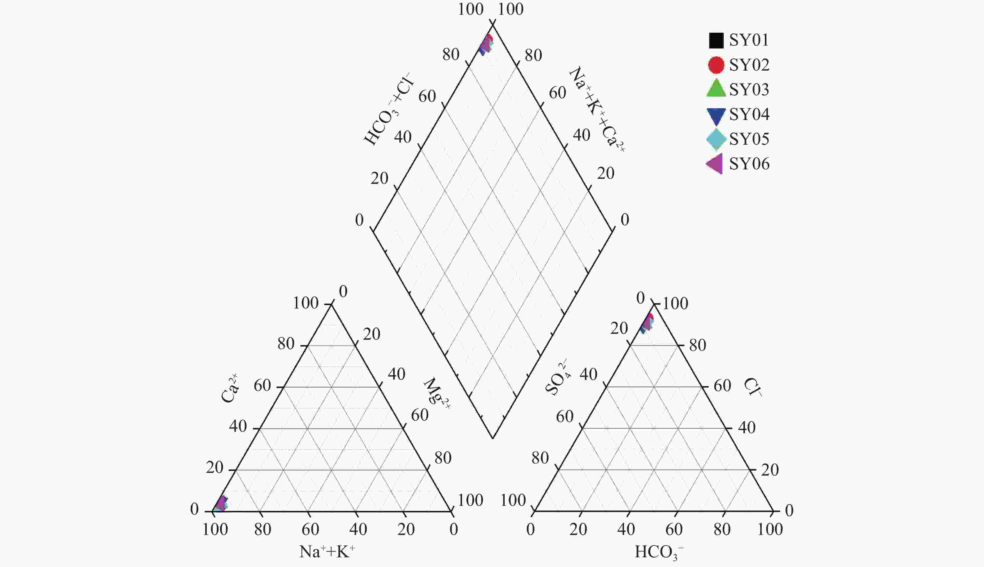摘要: 渝东北地区高隆起背斜两翼发育的地下热水系统具有独特的水化学特征与成因机制。为揭示其水化学特征及其与典型地下热水的成因差异,选取方斗山背斜西北翼长滩地区天然温泉及钻孔温泉为研究对象,通过水文地球化学测试、水化学图解、地热温标和地下热水循环深度计算,结合区域水文地质条件探讨其形成机理。结果表明:(1)研究区温泉水化学类型为Cl-Na型,主要离子含量呈现出Na+(40.27 g·L−1)与Cl−(60.72 g·L−1)显著富集特征;(2)基于SiO2地热温标计算显示热储温度为54~78 ℃,结合地温梯度推算地下水循环深度达
