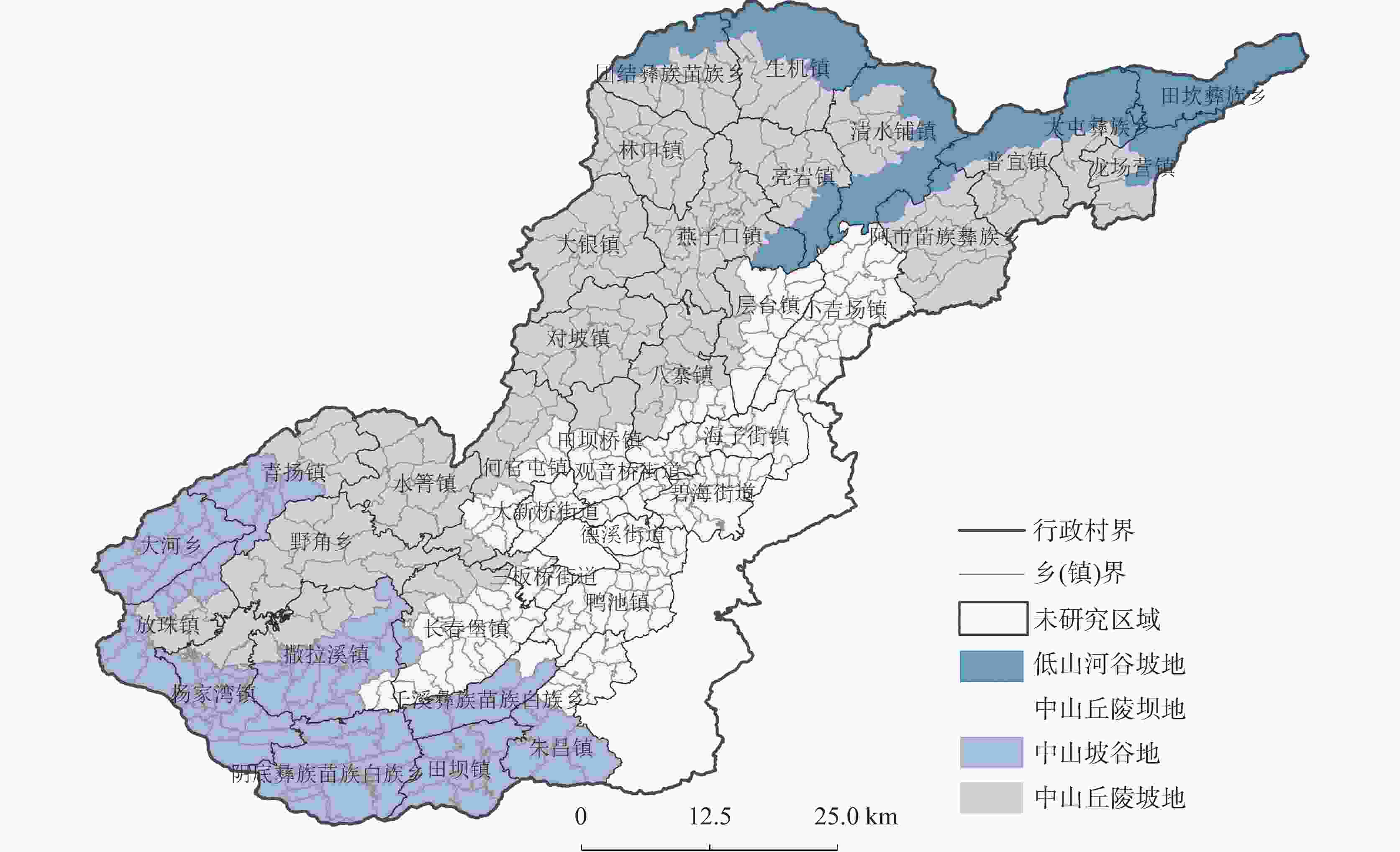 Table 5. Number and proportion of administrative villages by different geomorpic divisions