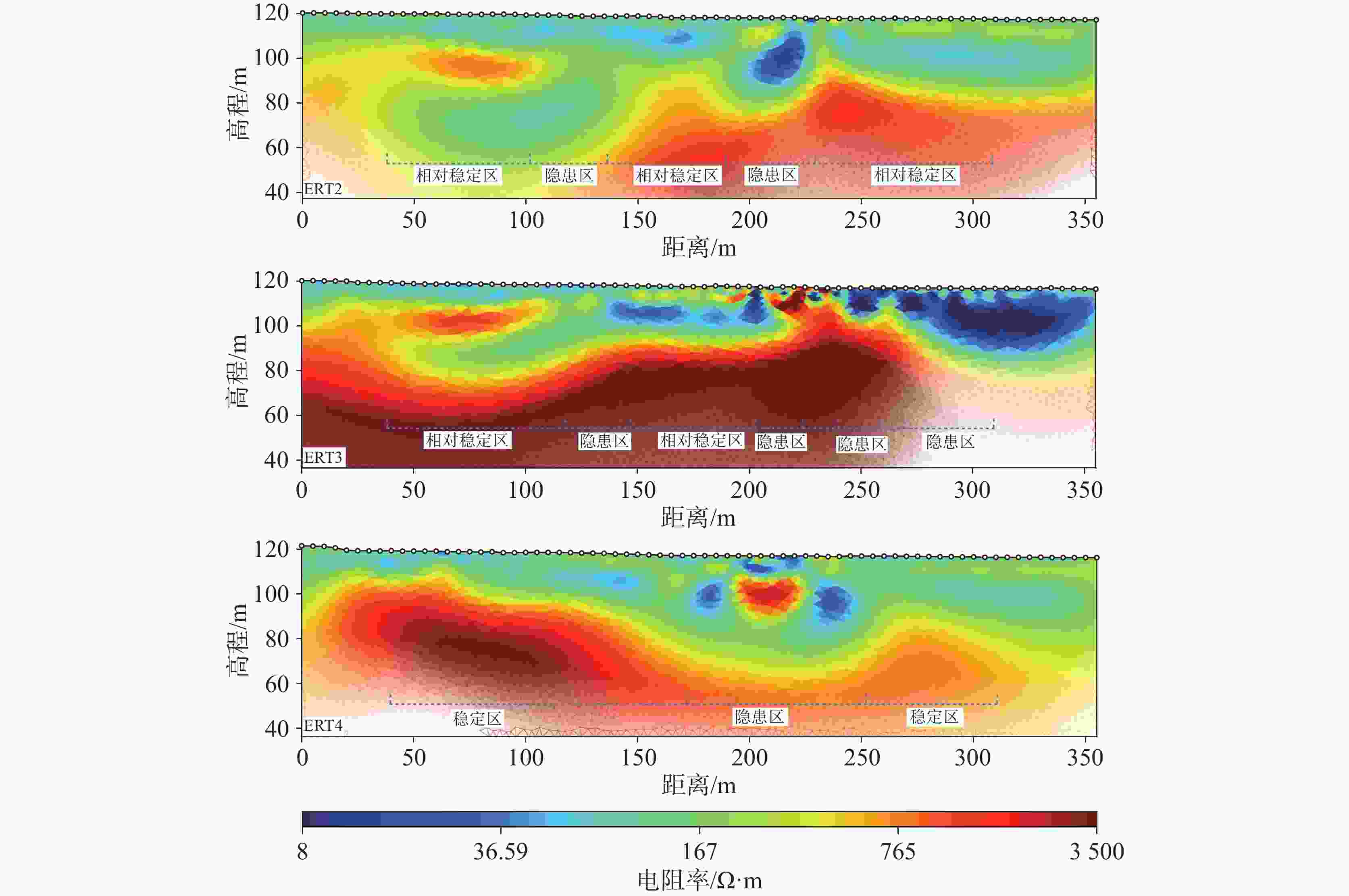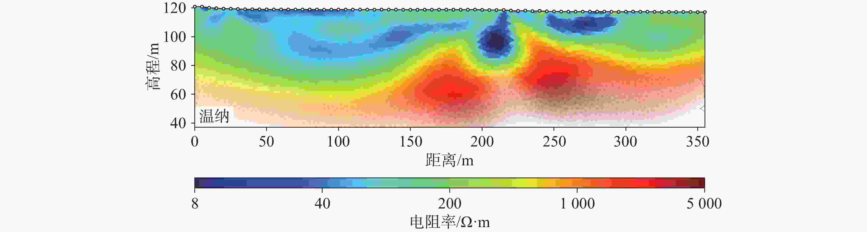 摘要: 粤西北连南县为典型浅覆盖岩溶塌陷隐患地区,岩溶塌陷地质灾害频发。采用高密度电法,结合钻探揭露等手段,查明区内地下岩溶分布及发育特征。结果表明:(1)不同采集装置对同一目标体反演的电阻率等值线具有各自的显示特点,可选择多排列组合装置提高勘探分辨率;(2)高密度电法可精确划分岩土分界面和测定覆盖层厚度,推断出岩溶异常区8处、地下岩溶发育带2条,物探推断与验证钻孔结果吻合较好;(3)圈定了8处岩溶塌陷隐患区。通过本次研究工作,高密度电法在识别溶洞或岩溶裂隙带方面具有良好的效果,推断出的岩溶塌陷隐患区对后续预防和治理提供了重要的依据。Abstract: