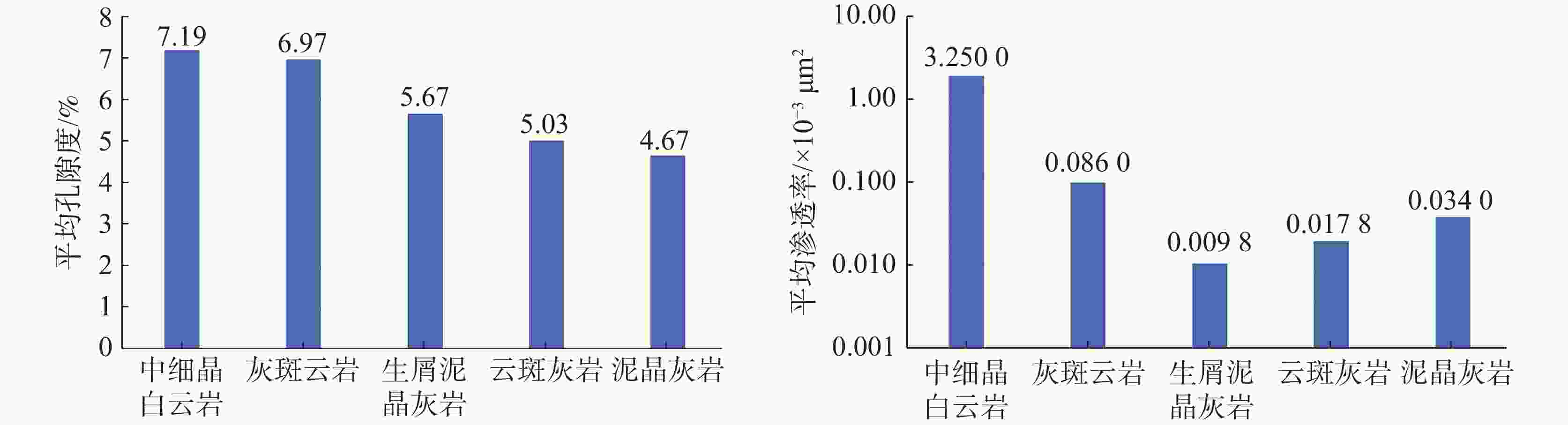 Figure  12.  Physical property testing of different rock types in the Yunyan Reservoir Section of the Hongyan Maokou Formation, Huaying Mountain, Sichuan Province (n=280)