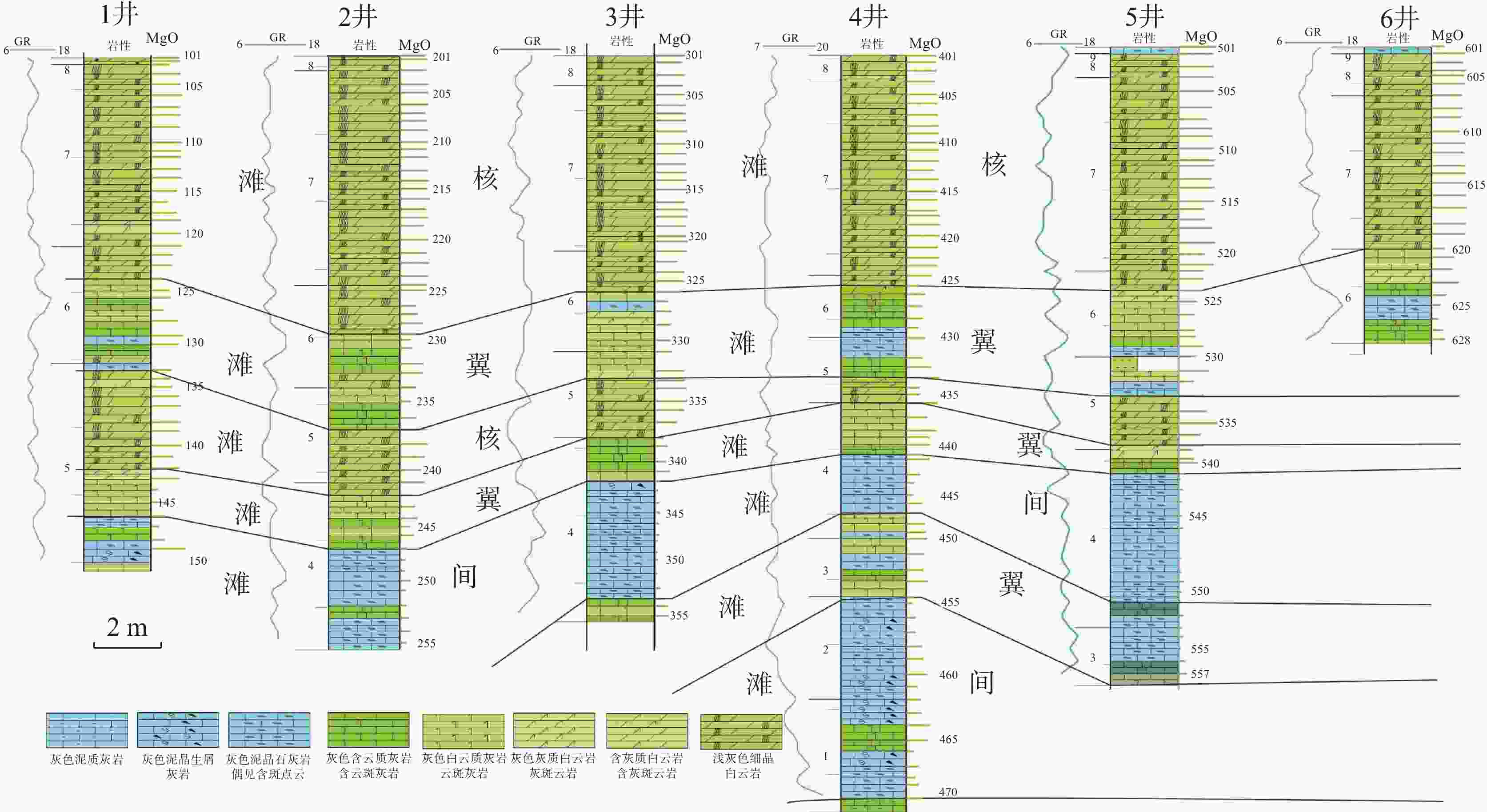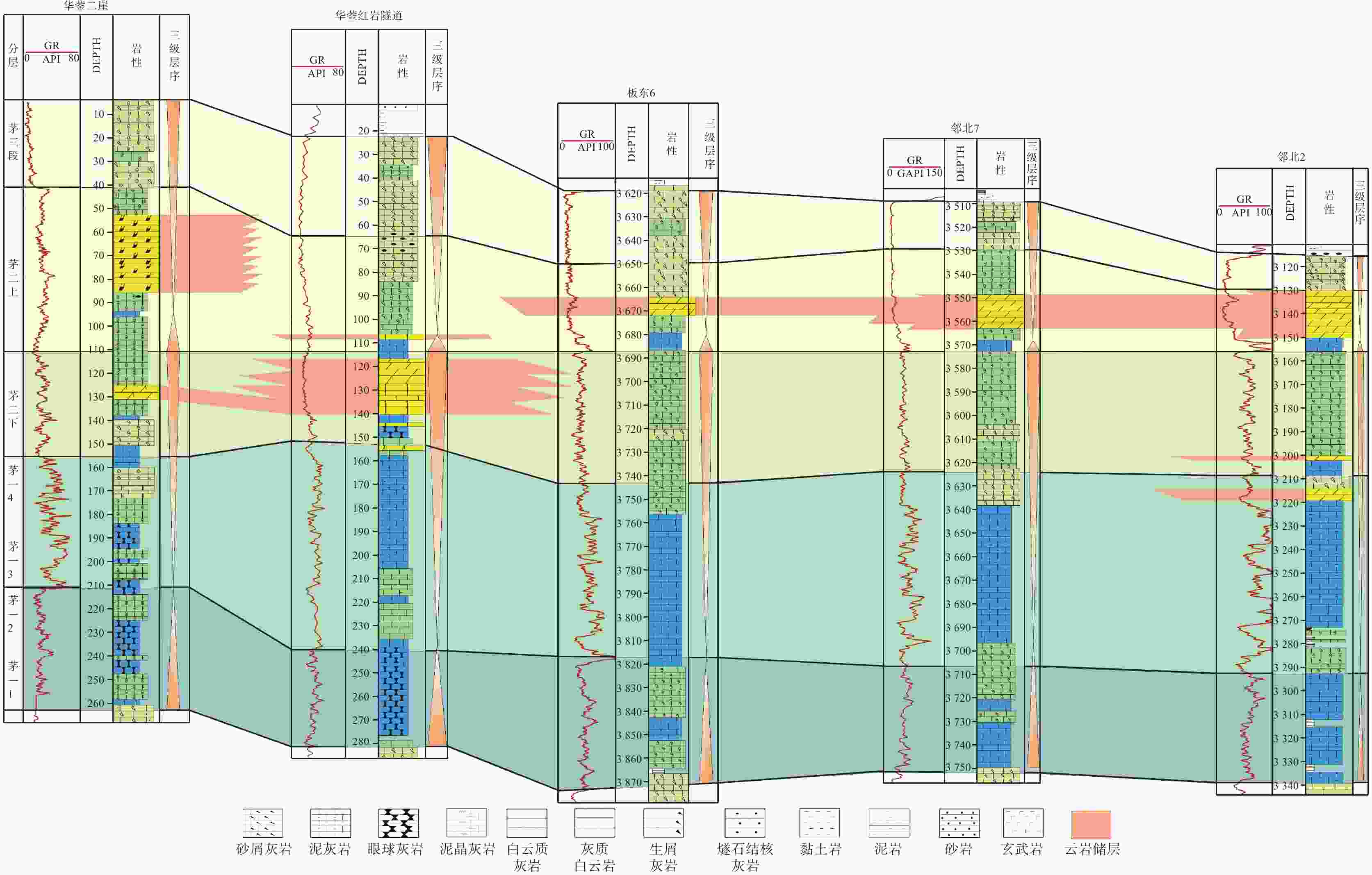 图  7  华蓥山红岩剖面茅口组云化滩沉积微相划分与对比