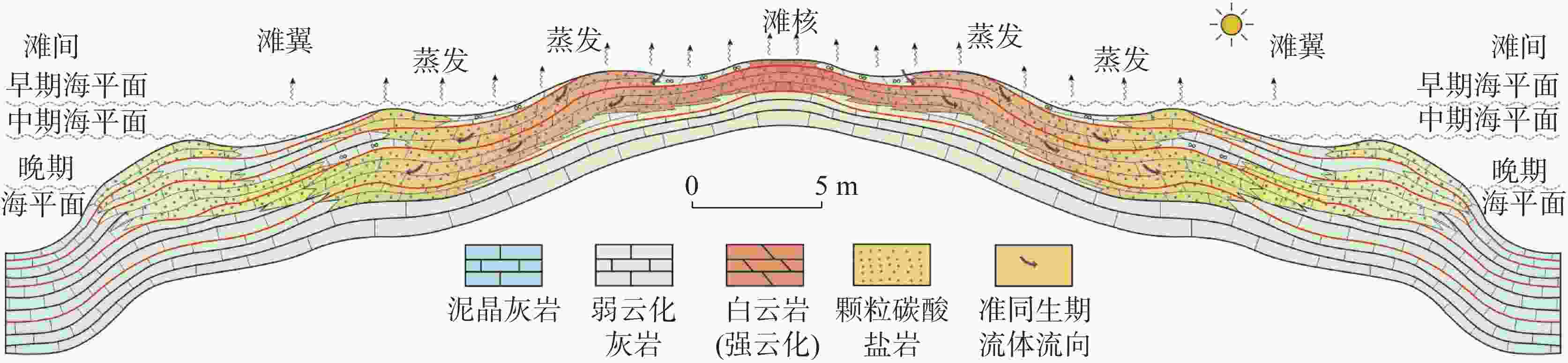 Figure  6.  Sedimentary model of the Yunhuatan Shoal deposits in the Maokou Formation in the Central Sichuan Basin (modified from Tan Xiucheng et al., 2025)