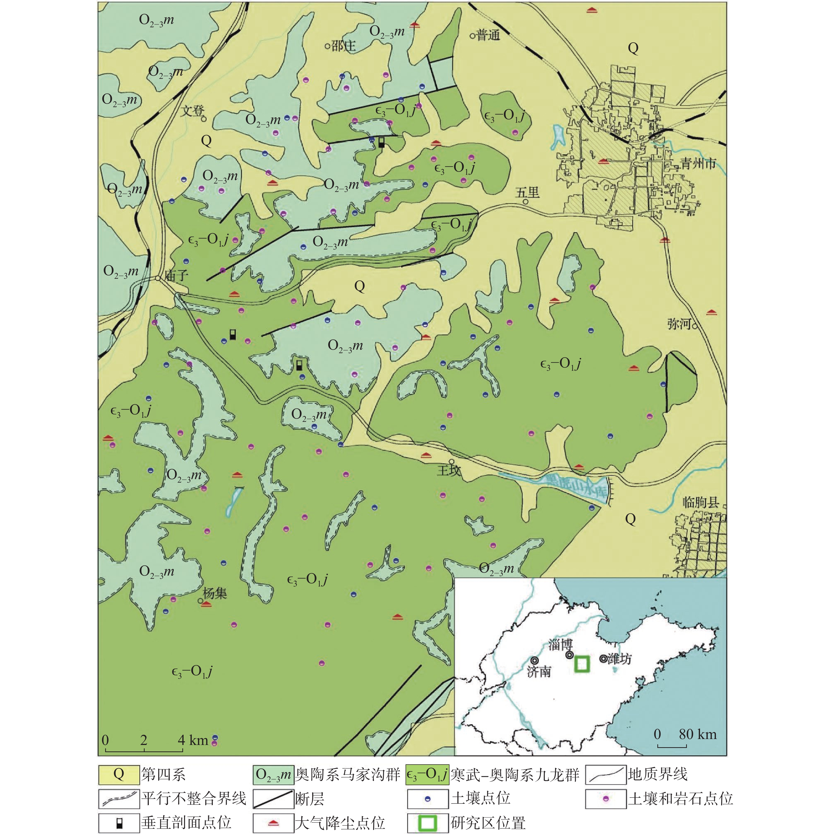• Soil heavy metals in carbonate rock regions often exhibit natural high-background characteristics due to secondary enrichment during pedogenesis, posing potential risks to soil health, agricultural product safety, and ecological sustainability. Understanding the pollution patterns and sources of heavy metals in such high-background zones is critical for formulating targeted environmental protection strategies and safeguarding human health. This study focused on the carbonate rock region of central Shandong, a typical northern Chinese karst region dominated by Cambrian-Ordovician limestone and dolomite as parent rocks. A comprehensive investigation was conducted by collecting and analyzing samples of rock, surface soil, vertical soil profile, and atmospheric dustfall. Multiple analytical methods, including Enrichment Factor (EF) analysis, Principal Component Analysis (PCA), annual heavy metal increment simulation from dustfall, and Pearson correlation analysis, were employed to explore the pollution characteristics, sources, and influencing factors of soil heavy metals. Carbonate rock regions are globally significant for their unique pedogenic processes, where heavy metals undergo secondary enrichment due to intense chemical weathering and leaching of carbonate minerals. This natural enrichment, combined with potential anthropogenic inputs (e.g., atmospheric dustfall), complicates the identification of heavy metal sources and their ecological impacts. Previous studies have primarily focused on single-medium (soil-only or rock-soil) analyses, lacking systematic multi-medium investigations. This study aimed to bridge this gap by integrating data on rock, soil, and atmospheric dustfall to comprehensively characterize the behavior of heavy metals in carbonate rock regions. The study area, located at the junction of the mountainous area in central Shandong and the northern Shandong plain, experiences a semi-humid continental monsoon climate characterized by distinct seasonal precipitation. Parent rocks are primarily carbonate (limestone and dolomite), with soil development dominated by chemical weathering. Soil samples were collected from natural woodlands and wilderness grasslands with minimal human disturbance. Rock samples were collected at the outcrop of bedrock. Atmospheric dustfall samples were collected over a one-year period of dry deposition. All samples were processed and analyzed in a certified laboratory, with heavy metal concentrations measured by Inductively Coupled Plasma Mass Spectrometry (ICP-MS), X-ray Fluorescence (XRF), and Atomic Fluorescence Spectrometry (AFS). Additionally, physicochemical properties, including pH, cation exchange capacity, and organic matter, were determined. The results show as follows: (1) The contents of soil heavy metals (Cu, Pb, Zn, Cr, Ni, As, Cd, and Hg) are 2.76 to 6.82 times higher than those in parent rocks. The contents of As, Cr, and Ni in atmospheric dustfall is lower than those in soil (enrichment coefficient between 0.47 and 0.65), while the contents of Cu, Pb, Zn, Hg, and Cd are higher (enrichment coefficient between 1.17 and 8.67), with Cd being the most significantly enriched. (2) The average pollution degree of soil heavy metals, ranked by EF values, is: Hg > Cd > Ni > Cu > As > Zn > Pb > Cr. Most metals exhibit low pollution levels (EF< 2), except for minor Hg cases (EF> 5). Cr and Ni show negligible anthropogenic influence (all EF< 2), while Cd and Hg have relatively higher EF values, indicating potential external inputs. (3) Atmospheric dustfall contribute to the accumulation of soil heavy metals, with annual growth rates calculated as follows: Cd (0.55%), Hg (0.20%), Zn (0.16%), and Pb (0.09%). Cd and Hg, with the highest growth rates, were more significantly affected by dust deposition. (4) Soil Organic Matter (SOM) is strongly correlated with Cd and Hg (P<0.01), showing similar vertical distribution patterns (surface accumulation). Cation Exchange Capacity (CEC) is significantly correlated with Cu, Pb, Zn, Cr, Ni, and As (P<0.01), with stable vertical variations. These results indicate that Cd and Hg are primarily controlled by SOM and superimposed by dustfall inputs, while Cu, Pb, Zn, Cr, Ni, and As are mainly derived from parent rock weathering. This study provides a systematic multi-media (rock-soil-dustfall) analysis of heavy metal behavior in carbonate rock regions, emphasizing the combined effects of natural parent materials and anthropogenic dustfall. By integrating enrichment factor analysis, PCA, dustfall increment simulation, and correlation analysis, we identified the sources and controlling factors of soil heavy metals. These findings provide scientific support for strategies of evidence-based soil pollution control in similar carbonate rock regions, particularly prioritizing the management of Cd and Hg based on their higher accumulation rates and anthropogenic contributions.